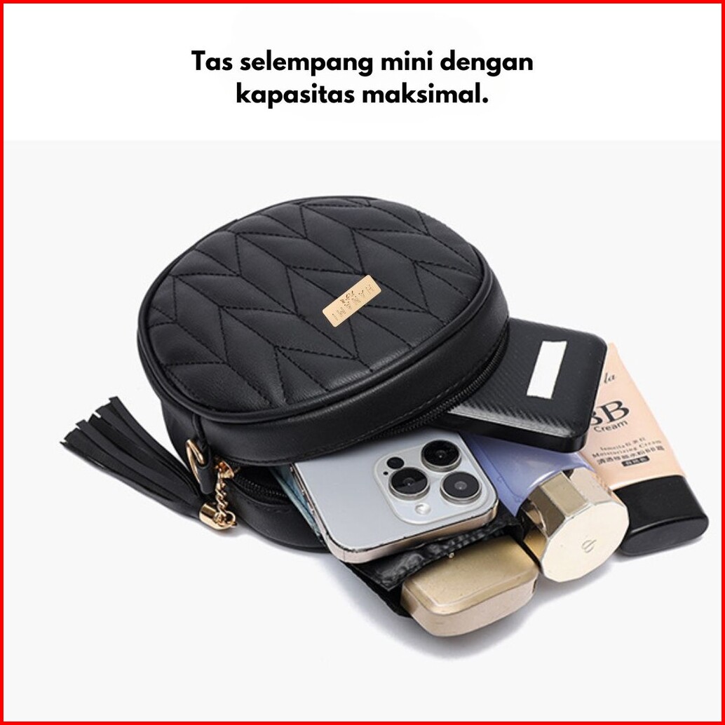Hanami Tas Selempang Wanita Kulit Youra Hitam Cantik Branded Simple Premium Kekinian Mewah Ta1053b5