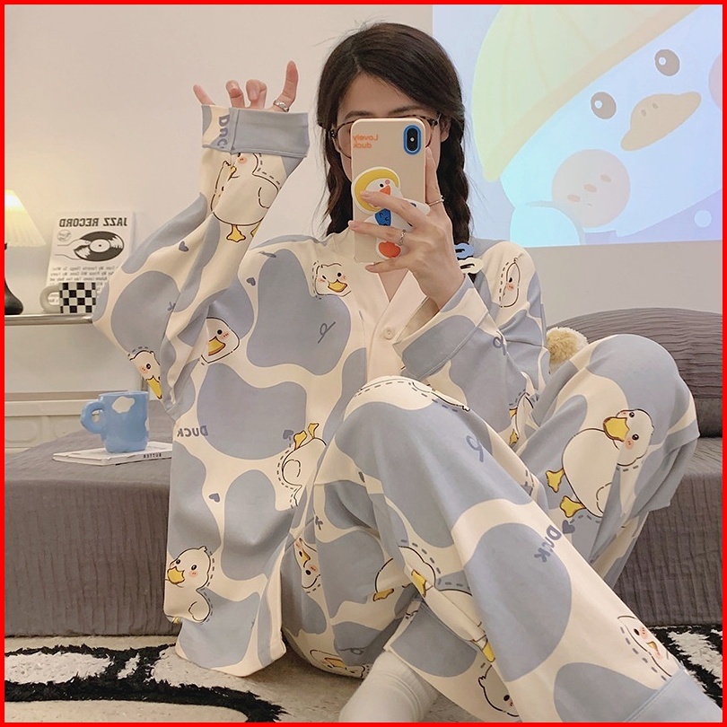 Ggs Baju Tidur Set Wanita Dewasa Remaja Setelan Piyama Perempuan Model Kemeja Kancing Busui Friendly Lengan Panjang Cela