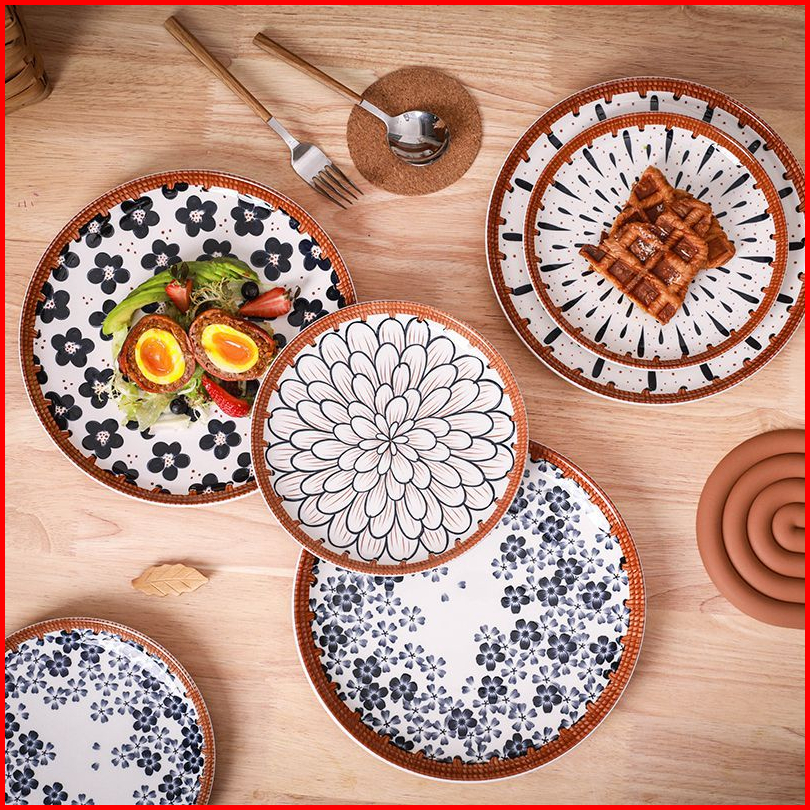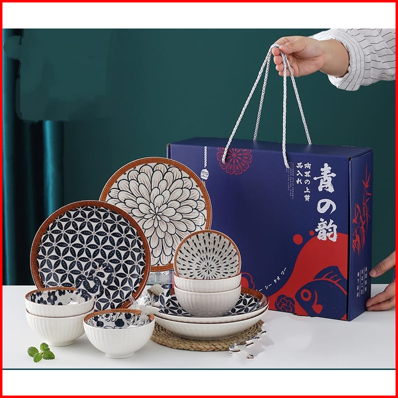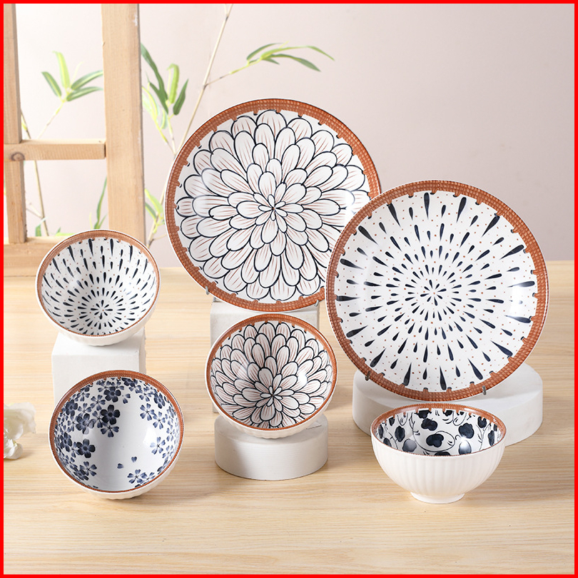 Cane Flower Japanese Plate Bowl Set Souvenir Mangkok Piring Keramik Set Hand Painted Japanese Wedding Gift Box Hampers K