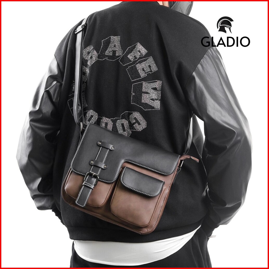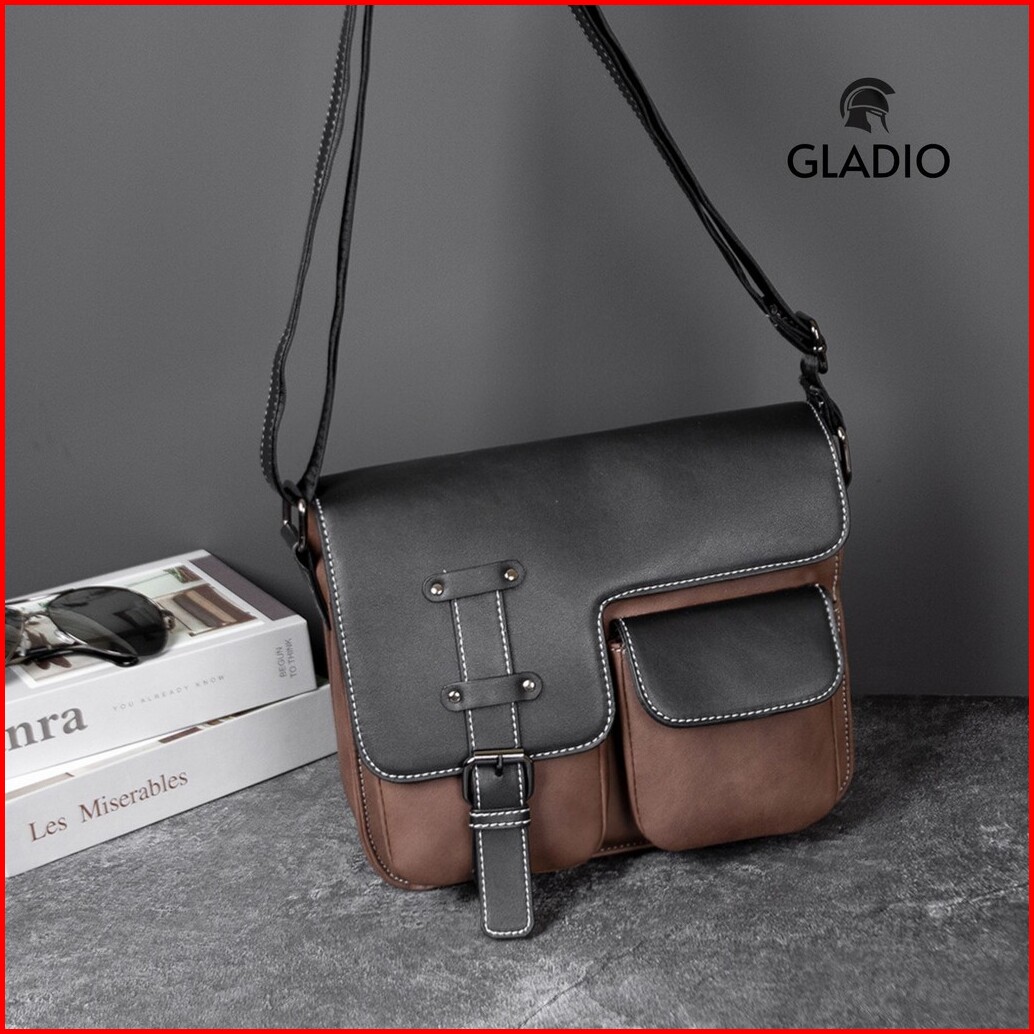 Gladio Tas Selempang Pria Kageo Cokelat Kulit Premium Stylish Casual Mewah Kekinian Elegan Gld001b7