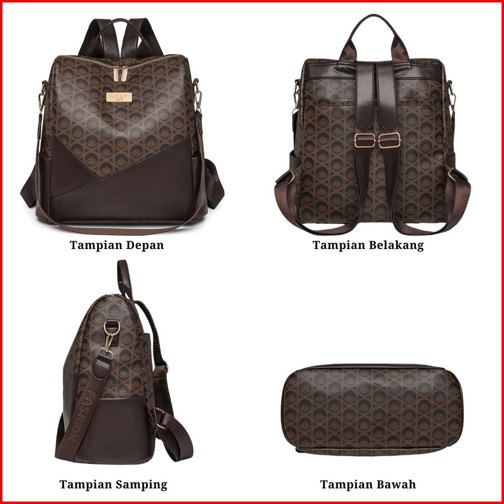 Hanami Tas Ransel Kulit Harada Coklat Cantik Backpack Mewah Premium Sekolah Kerja Kuliah Ta1061b7