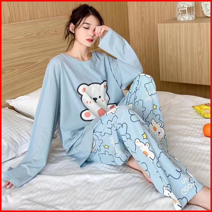 Mp Baju Tidur Import Set Piyama Wanita Lengang Panjang Celana Panjang Premium Model Santai 010