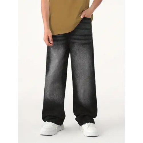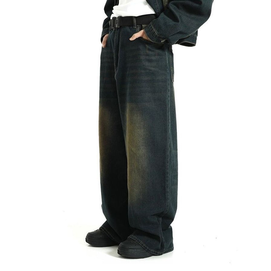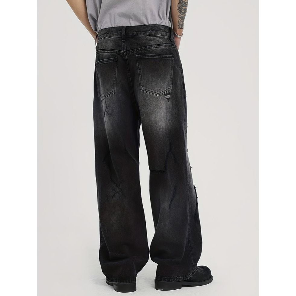 OREHA - Celana Jeans Wide Leg Wishker Lebar Gombrong Skena Black Pria Loose Fit Jumbo