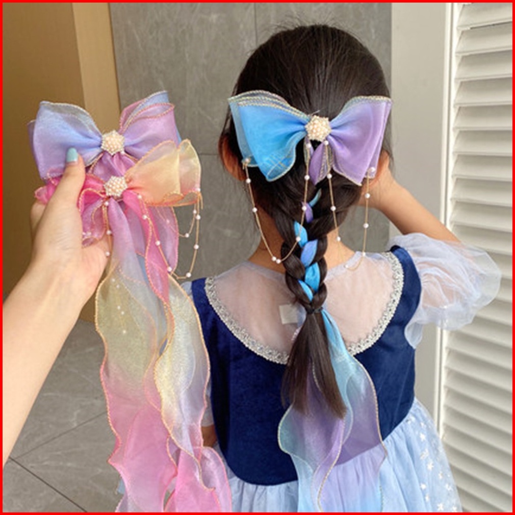 Kd6 22-jepitan Ikat Rambut Anak Cewek Perempuan Pita Panjang Kepang Mutiara