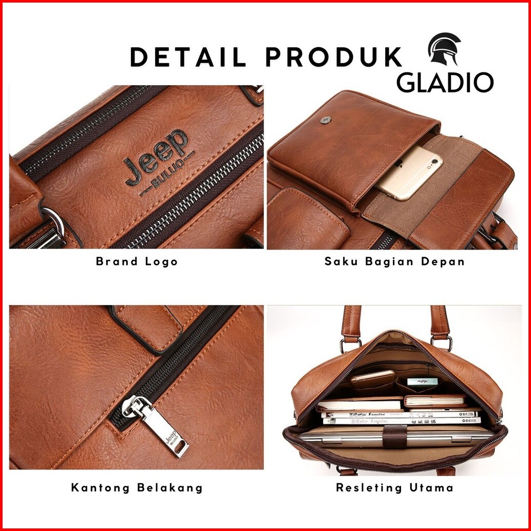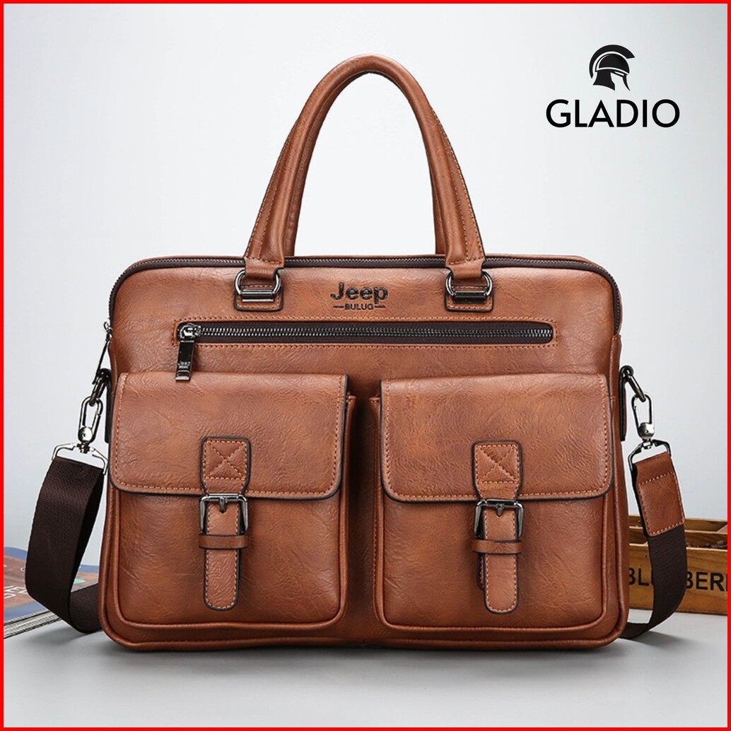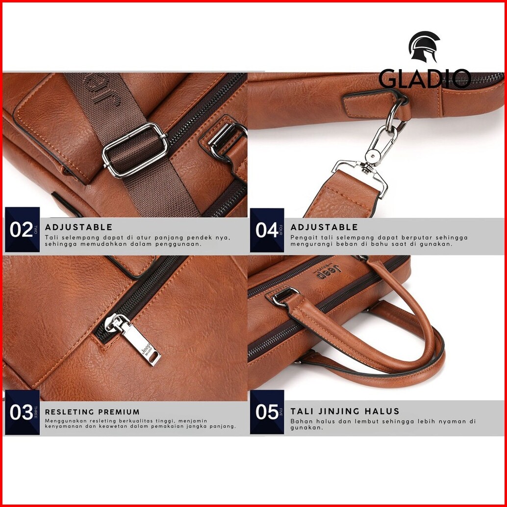 Gladio Tas Selempang Pria Hirota Mewah Kulit Cokelat Muat Laptop Kerja Formal Elegan Kantor Gld013b7