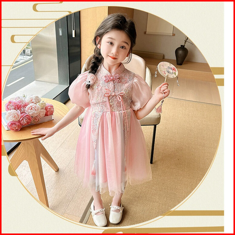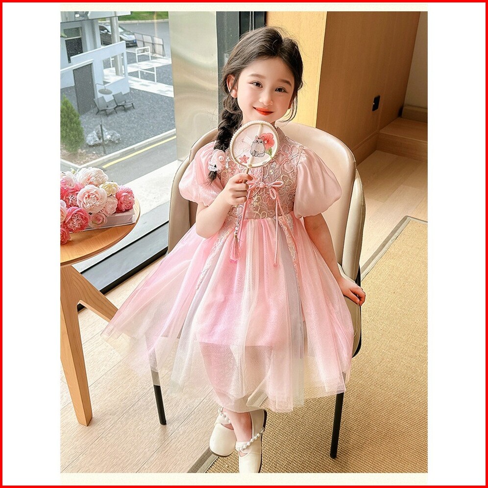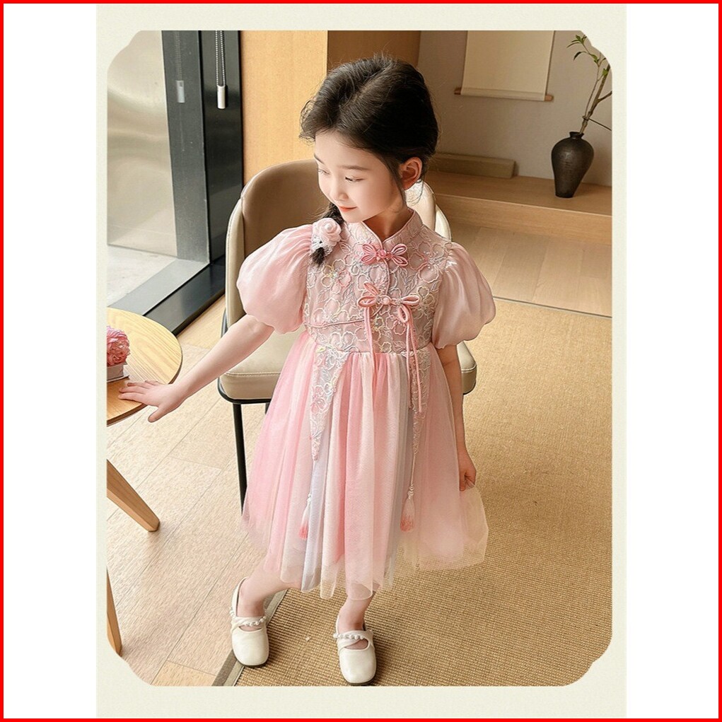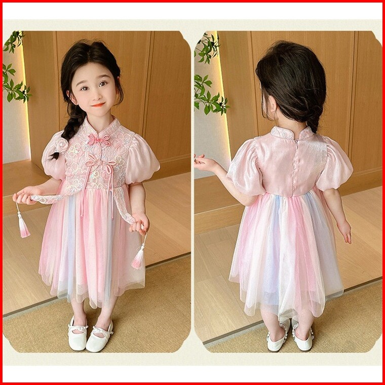 Kd8 Dress Gaun Anak Perempuan Silk Cheongsam Tutu Rainbow Bunga Payet