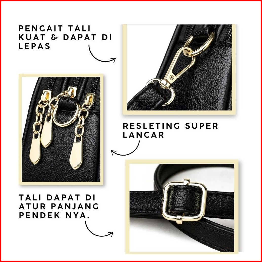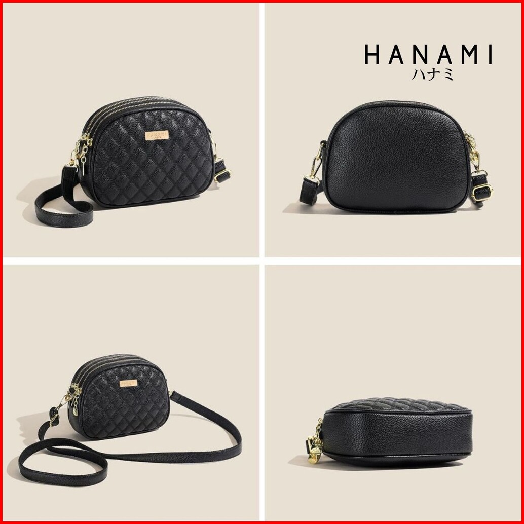 Hanami Tas Selempang Hitam Stacey Kulit Branded Cantik Kekinian Elegan Simple Premium Ta1051b5