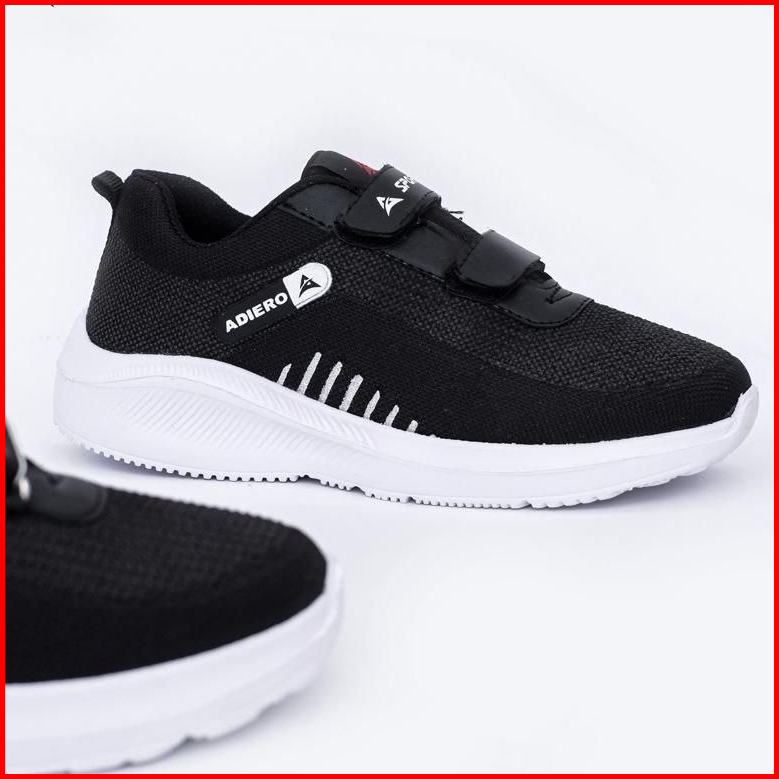 Adiero Sepatu Anak Sekolah Laki Perempuan Sneakers Velcro Original Warna Hitam Putih Size 28 - 40