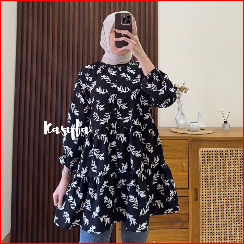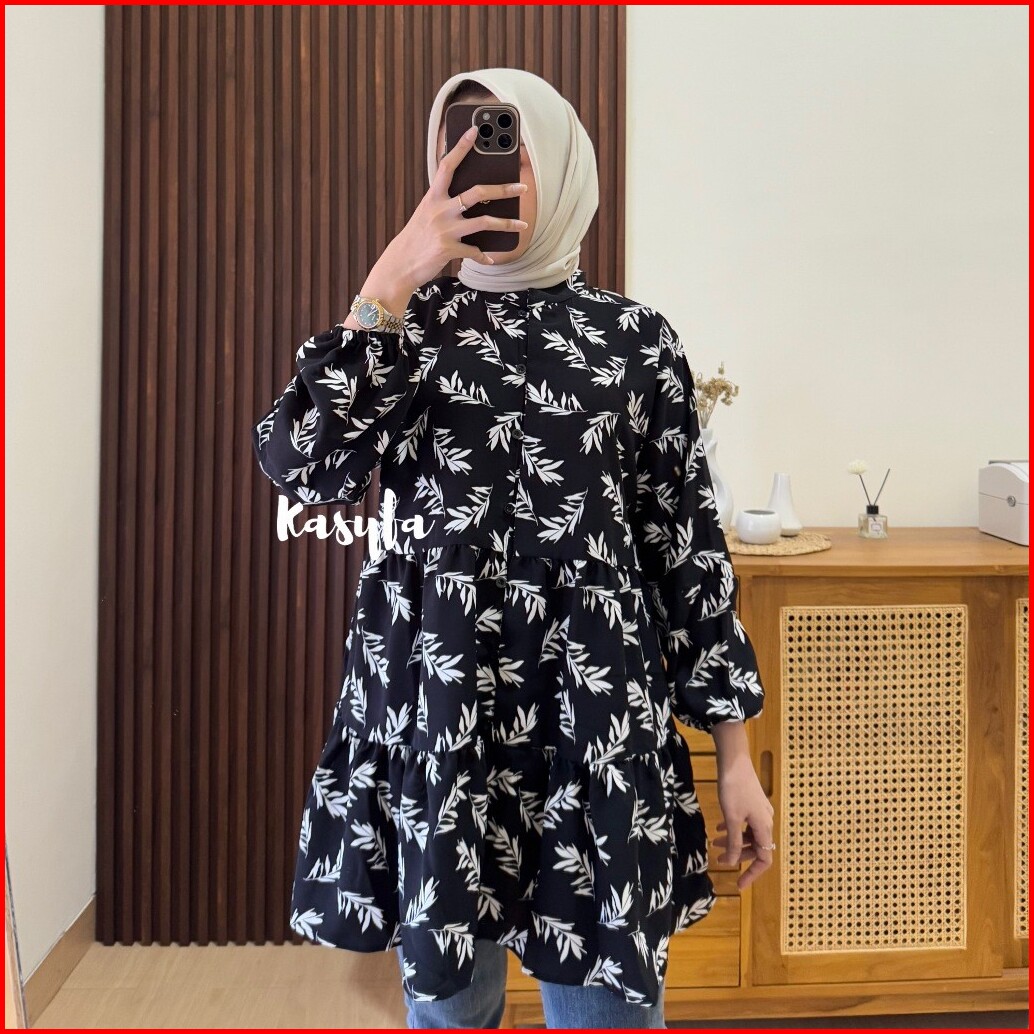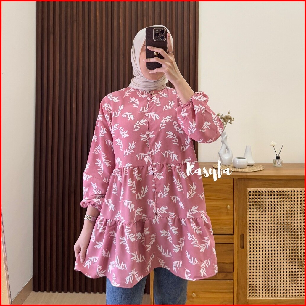 Sesil Kemeja Crinkle Wanita Motif Bunga