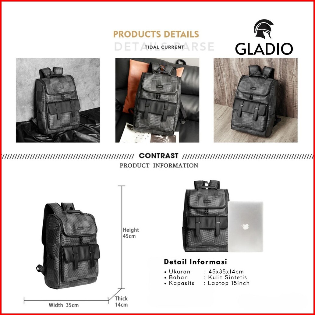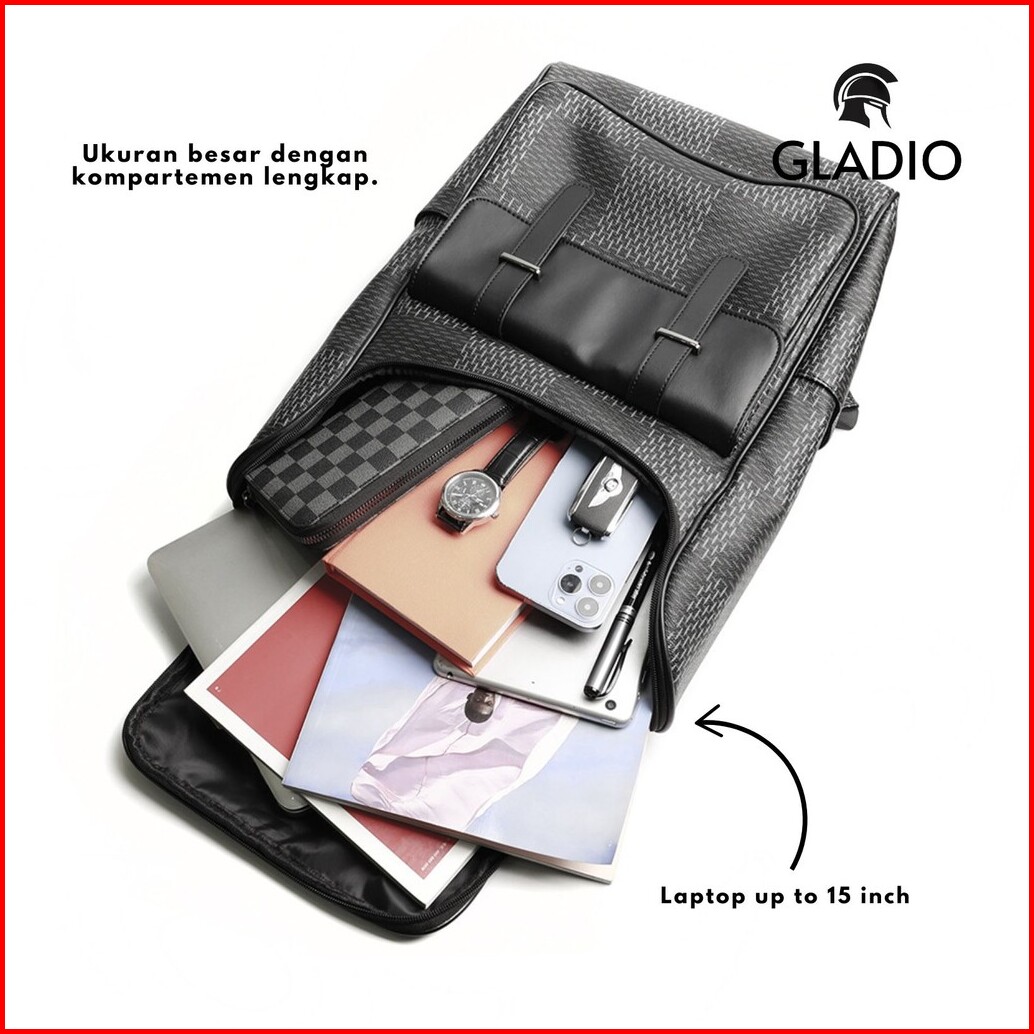 Gladio Tas Ransel Pria Regalia Hitam Muat Laptop Backpack Kerja Kuliah Kulit Premium Besar Gld006b5