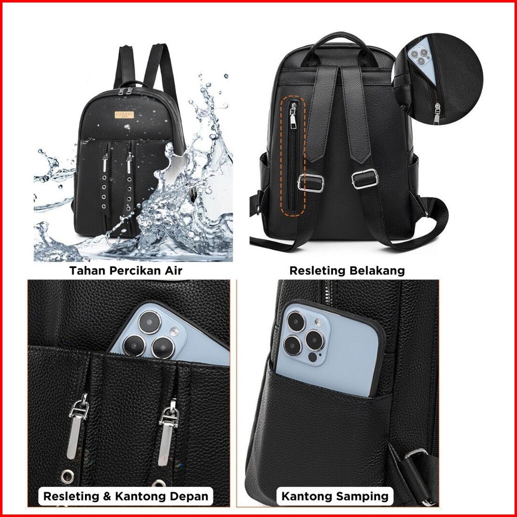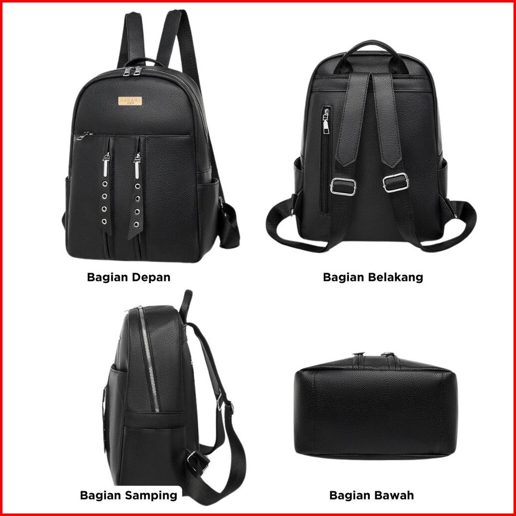 Hanami Tas Ransel Wanita Hitam Premium Oriel Kulit Kekinian Terbaru Sekolah Cantik Branded Ta1029b5