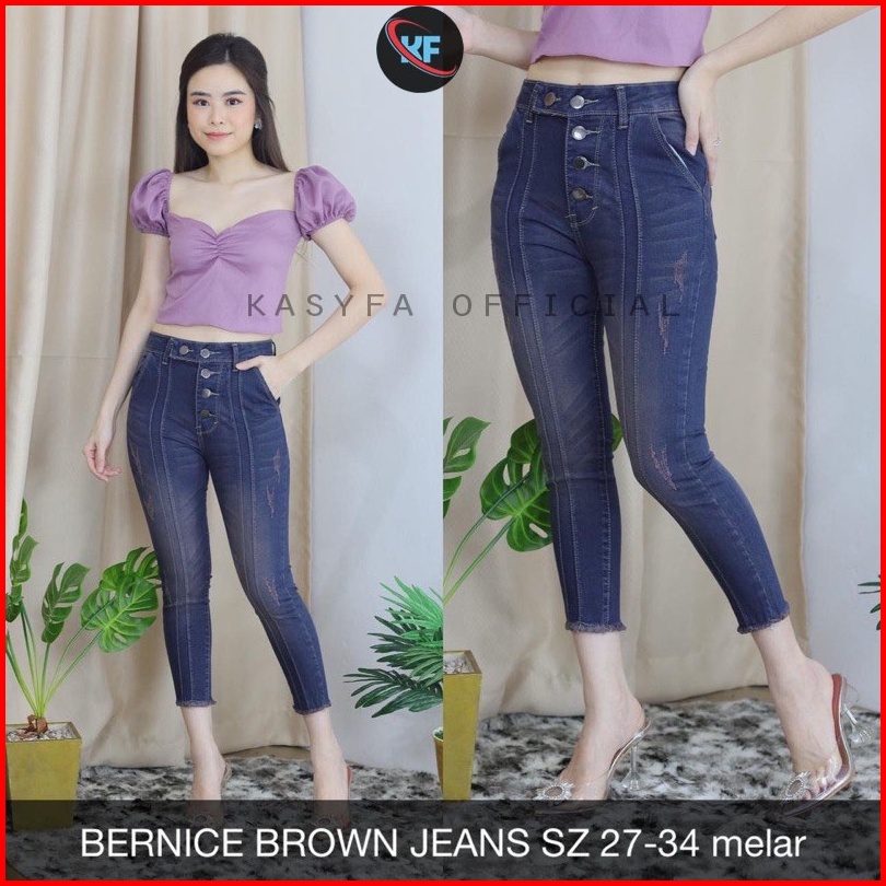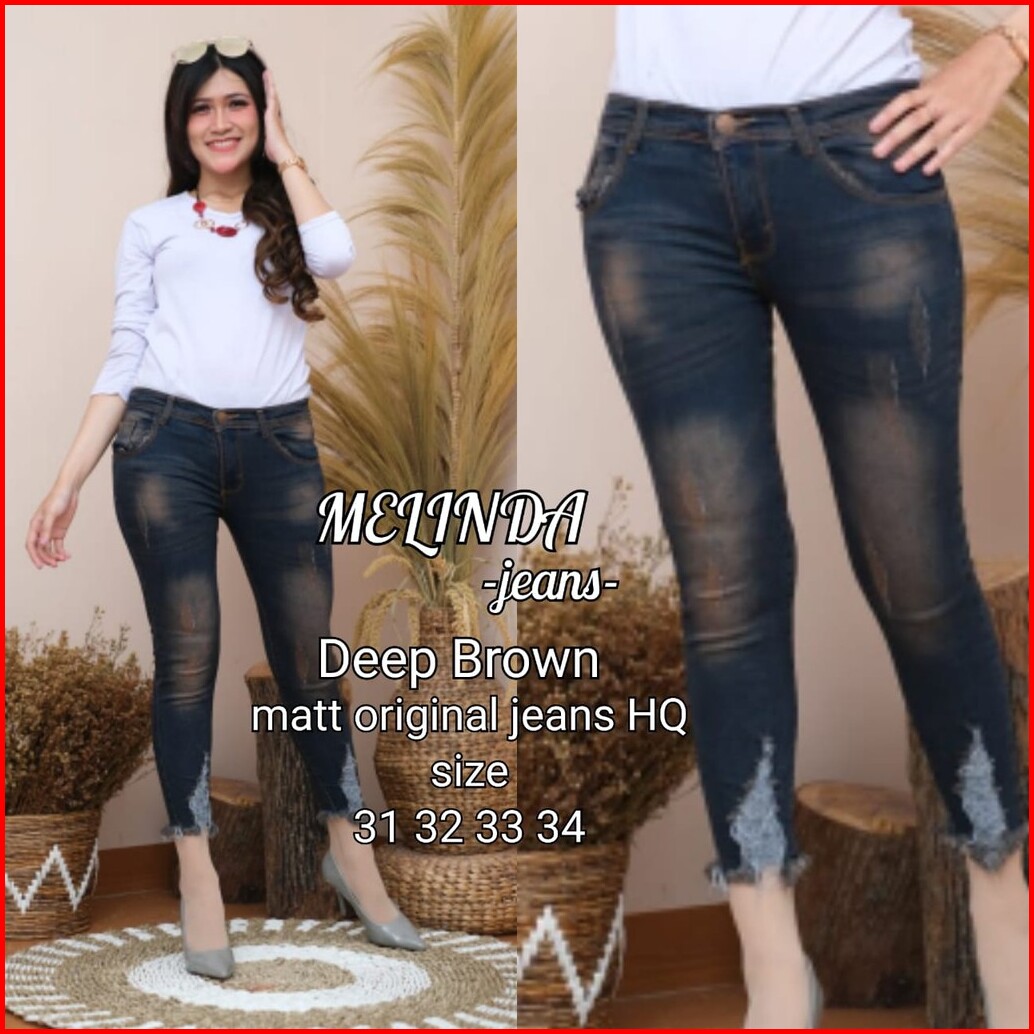 Kf - Brown Maddie Celana Jeans Wanita 7 9 Sobek Bulu Ellen