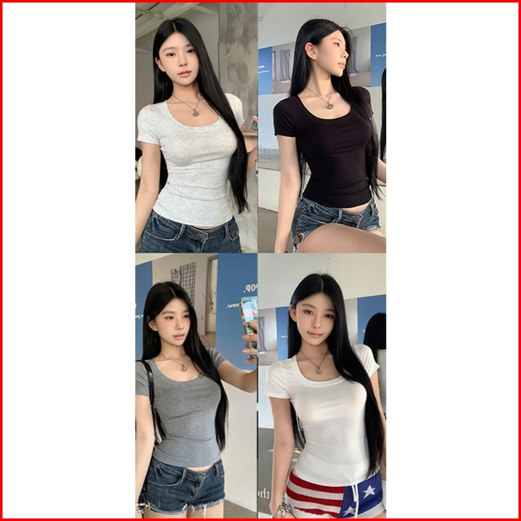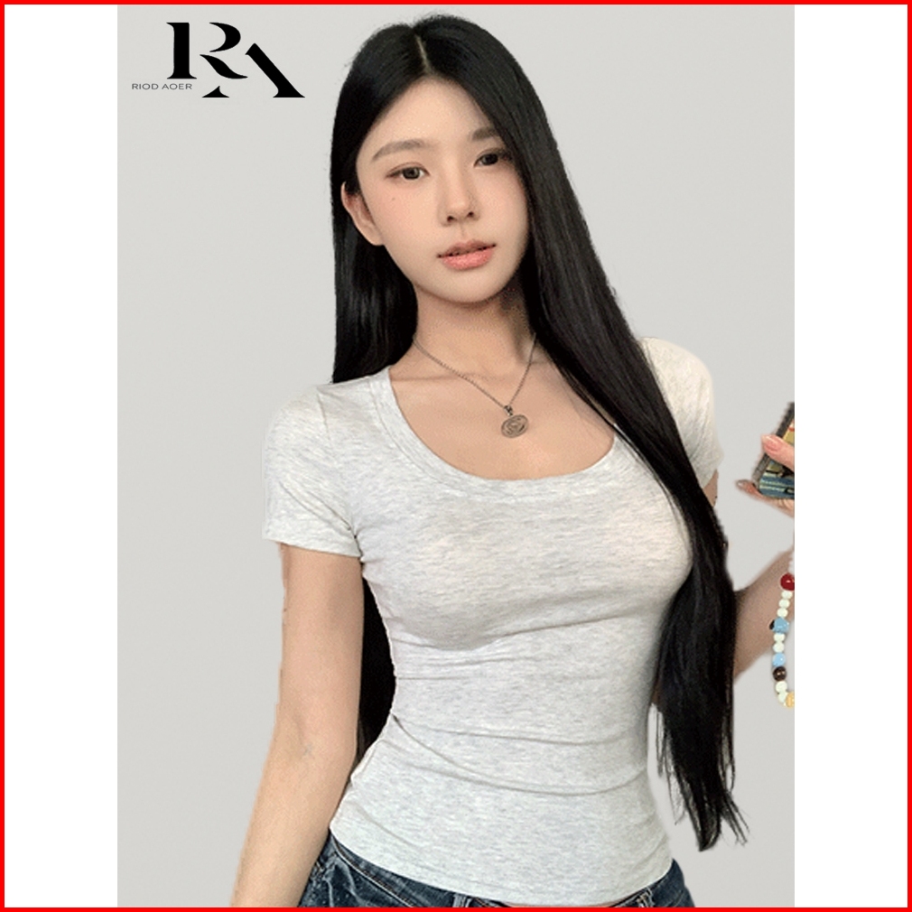 Riod Aoer Kaos Oblong Bahu Lurus Lengan Pendek Untuk Wanita Di Musim Panas Warna Solid Ramping Pas Di Badan Kemeja Atasa