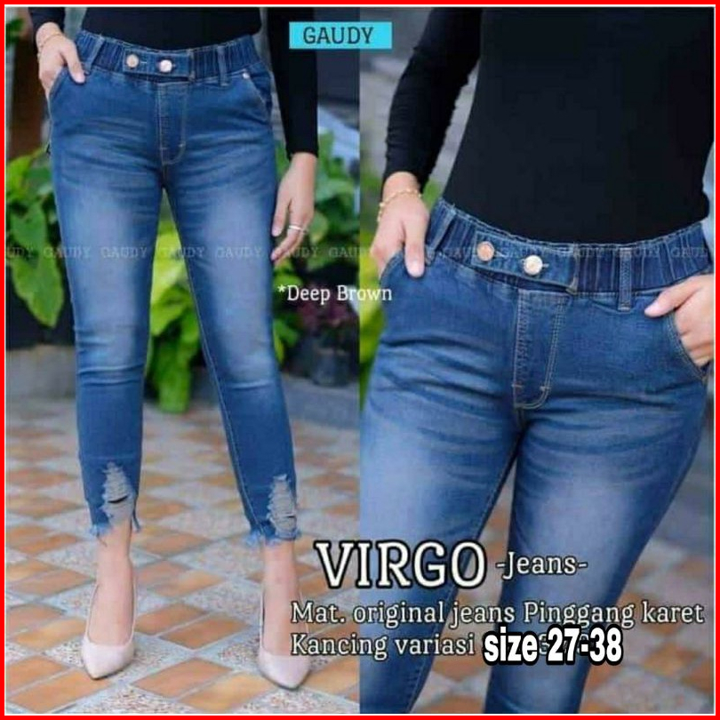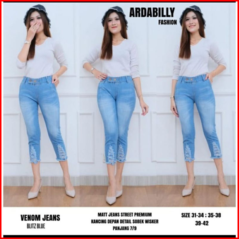 Monic Celana Jeans Jumbo 7 9 Cut Out 2 Button Sobek Bawah Big Size 31-42
