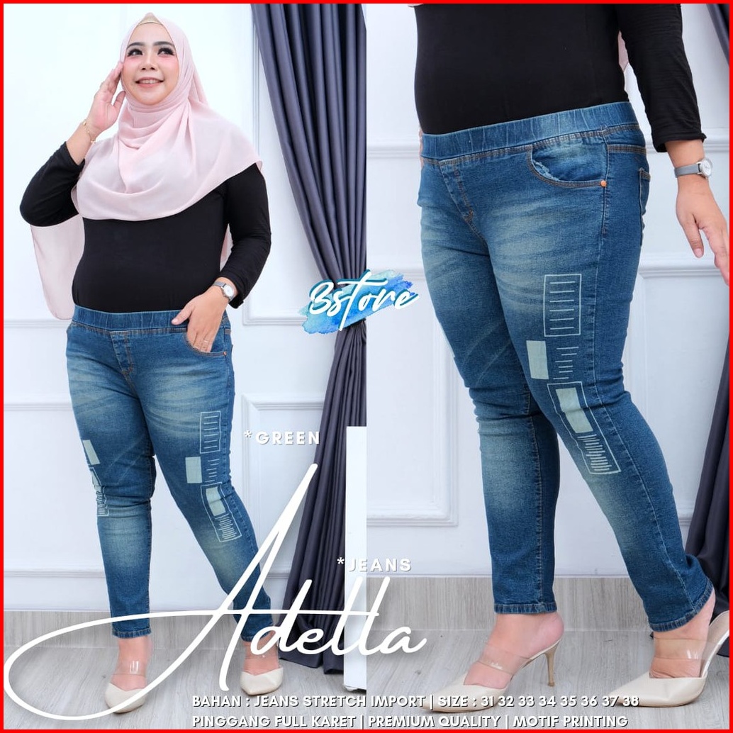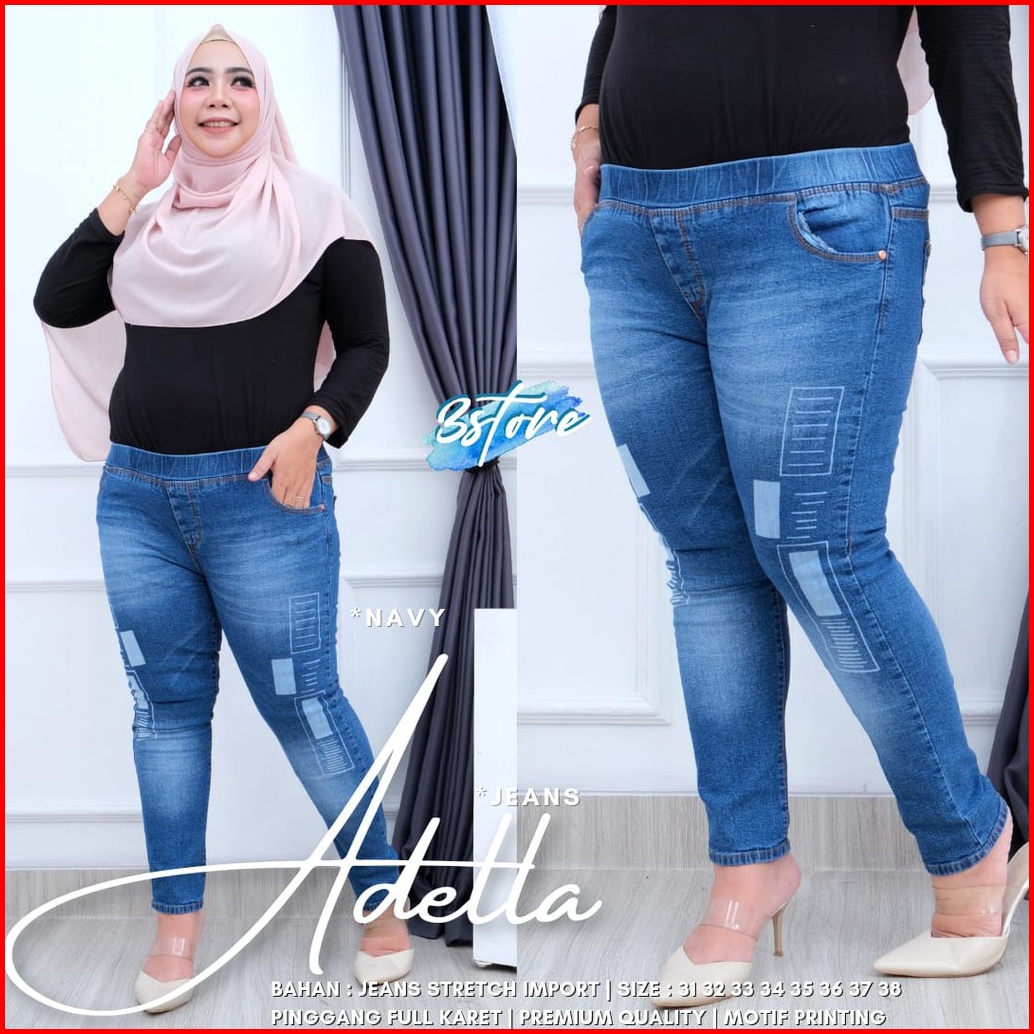 Lesty Pants Jumbo Celana Jegging Jeans Laser Kotak Size 35-38