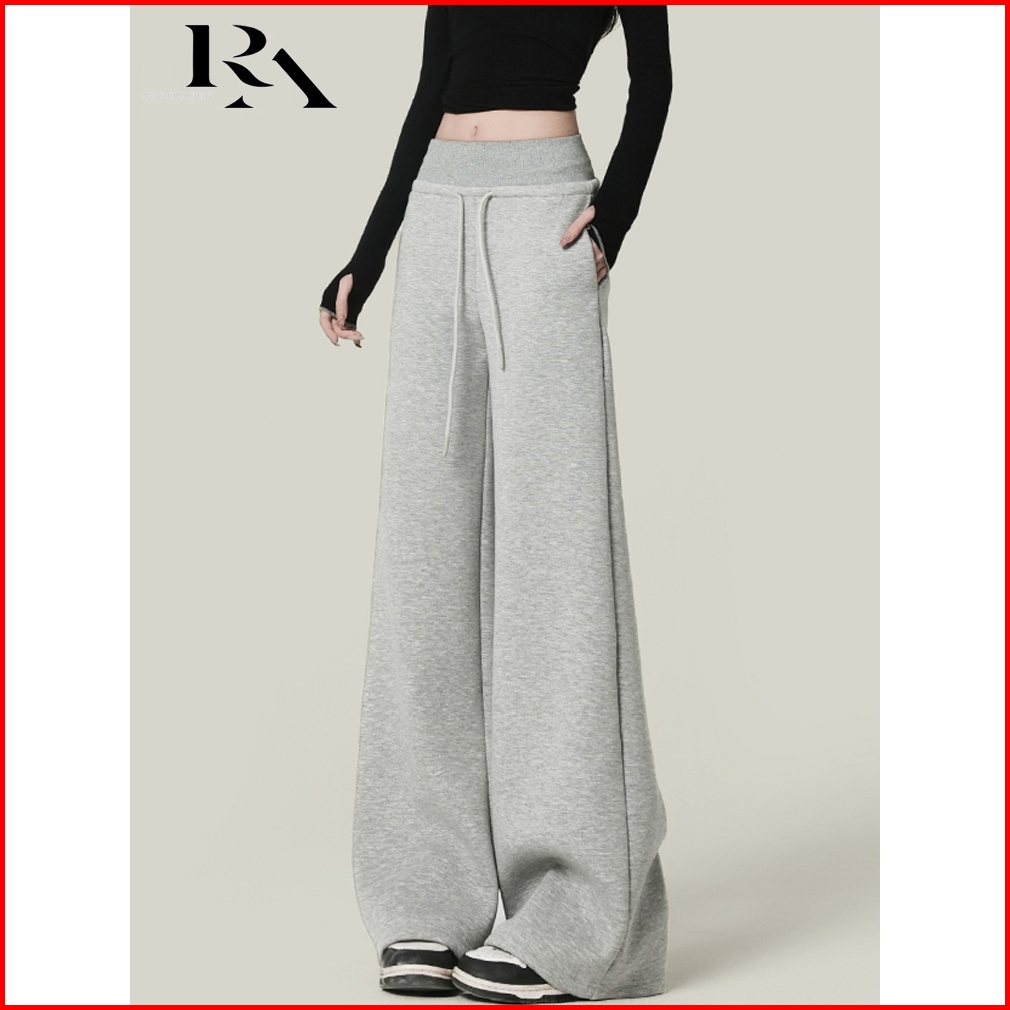 Riod Aoer Celana Kasual Kaki Lebar Abu-abu Gaya Amerika Untuk Wanita Musim Semi Dan Musim Panas Celana Olahraga Longgar