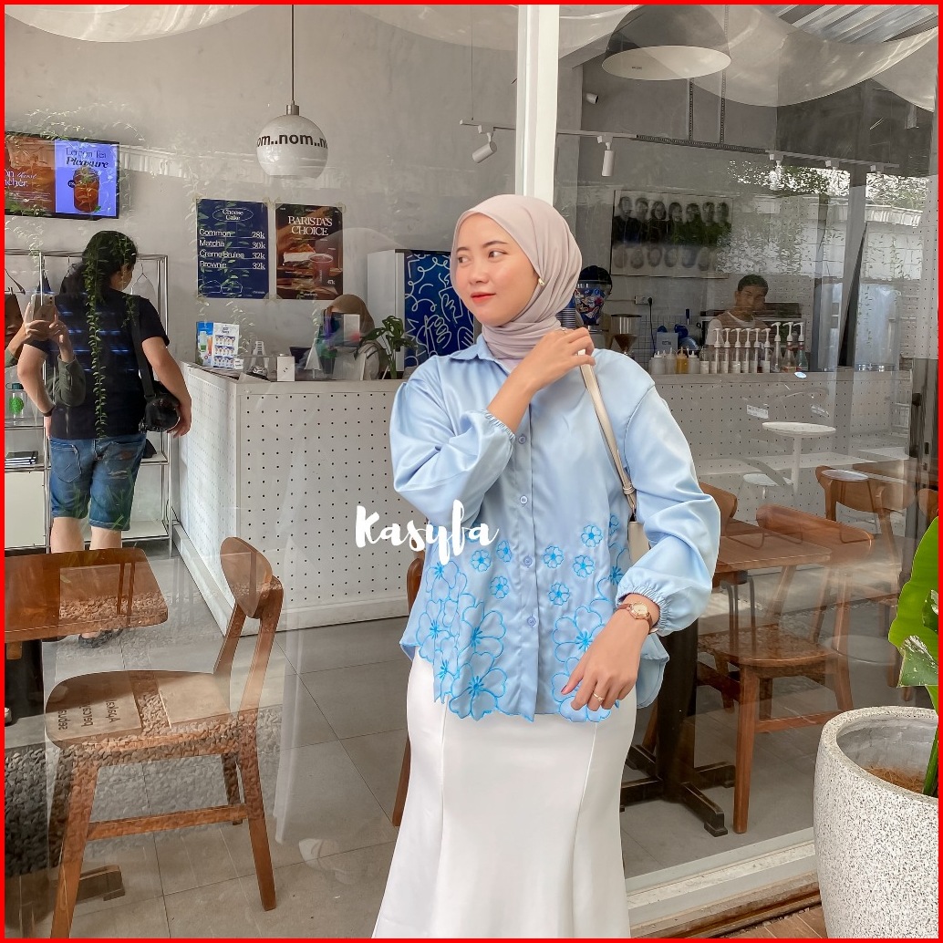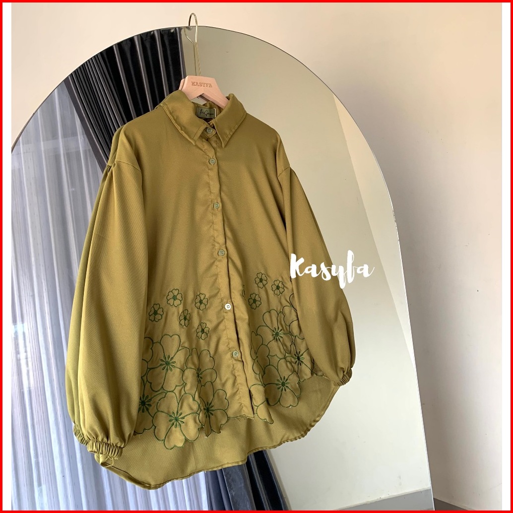 Kamila Kemeja Wanita Lengan Balon Bordir Motif Bunga Besar