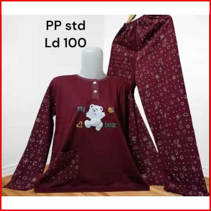 Set Pp Baju Tidur Kaos Lengan Panjang Dan Celana Panjang Jumbo Babydoll Wanita Ld 110-120cm