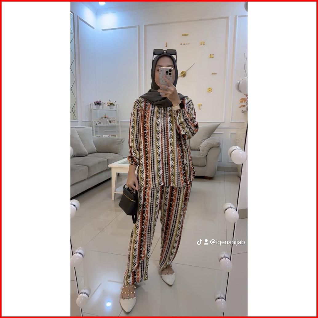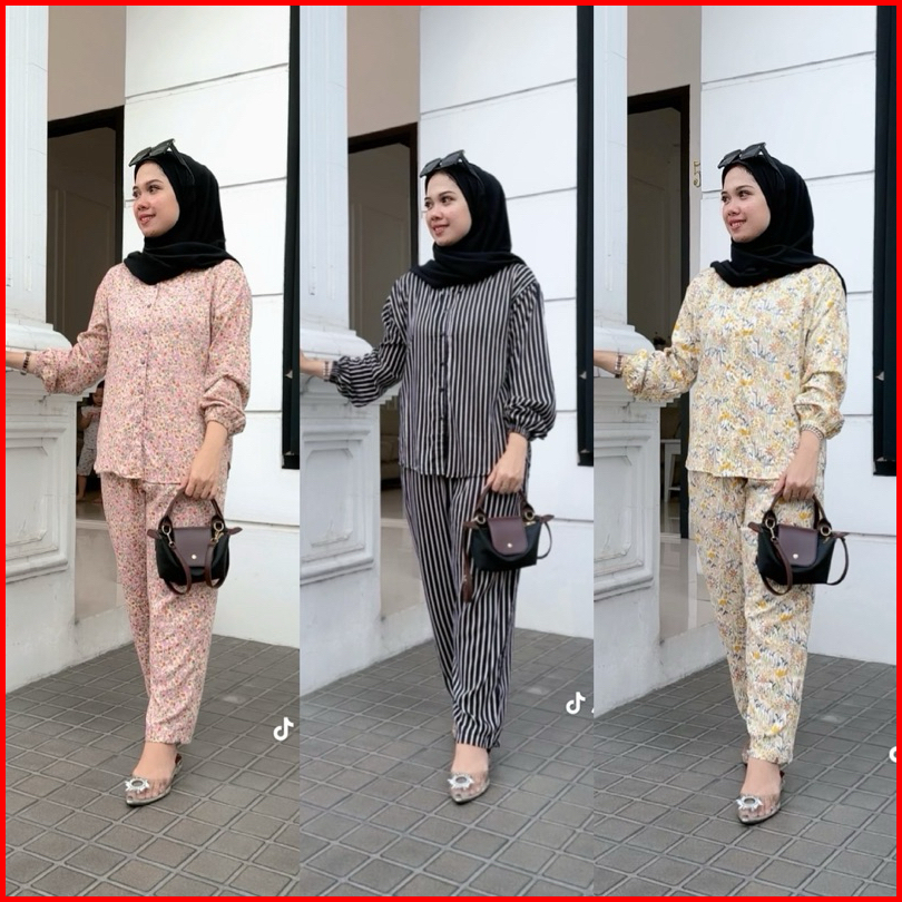 Iqena-oneset Rayon Lengan Panjang Piyama Motif Setelan Wanita