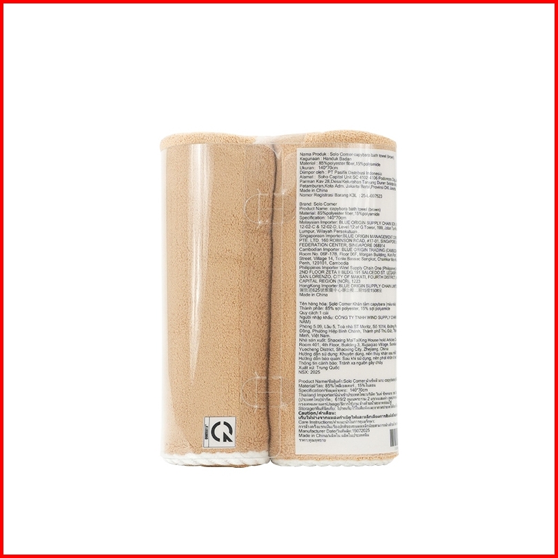 Ohsome - Solo Corner Bath Towel Handuk Mandi Karakter Capybara Warna Coklat
