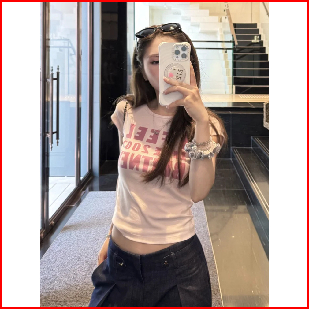 2toyoung Cetak Monogram Pink Spice Girls T-shirt Glamor Merah Muda Comfort Premium Combed 24s White - Kaos Wanita Crop T