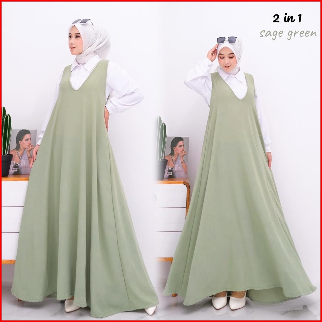 Flora 2in1 Midi Dress Crincle Wanita Plus Inner