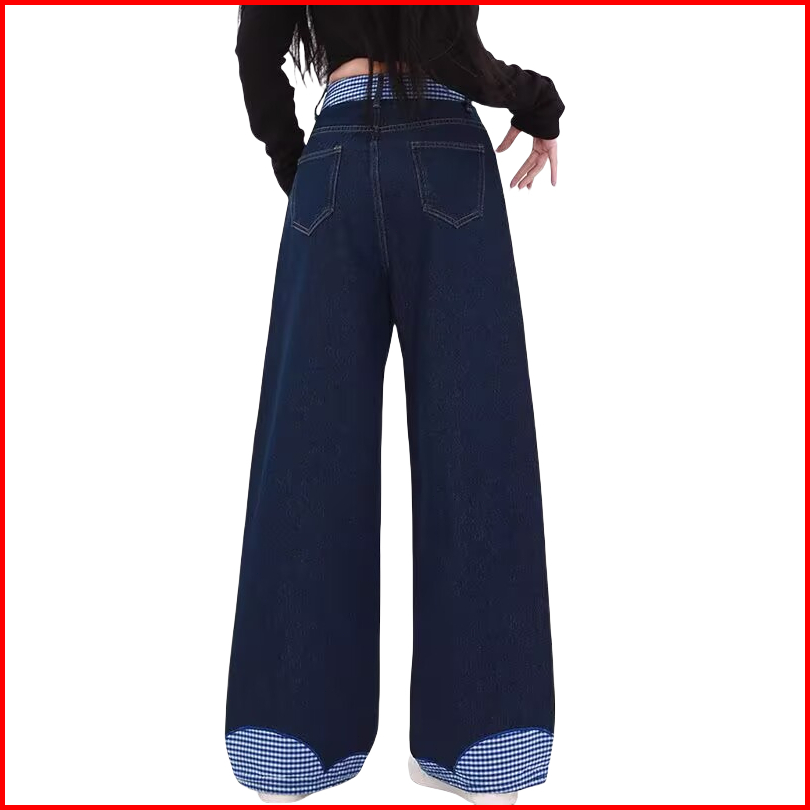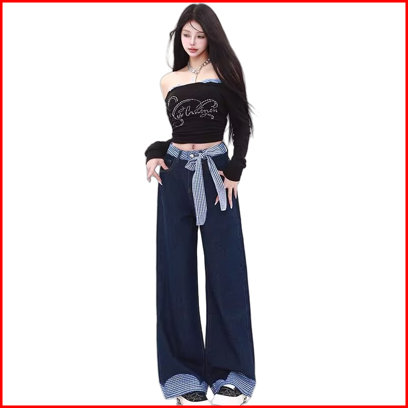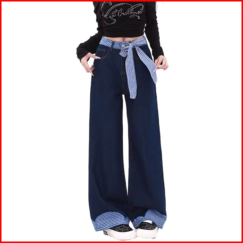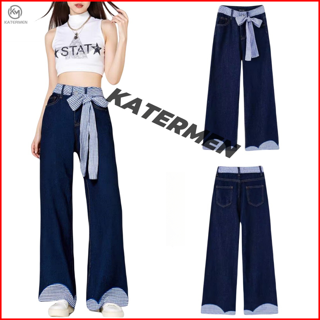 Katermen Jeans Wanita - Jeans Pinggang Tinggi - Celana Kaki Lebar Dengan Dasi Kupu-kupu-celana Denim