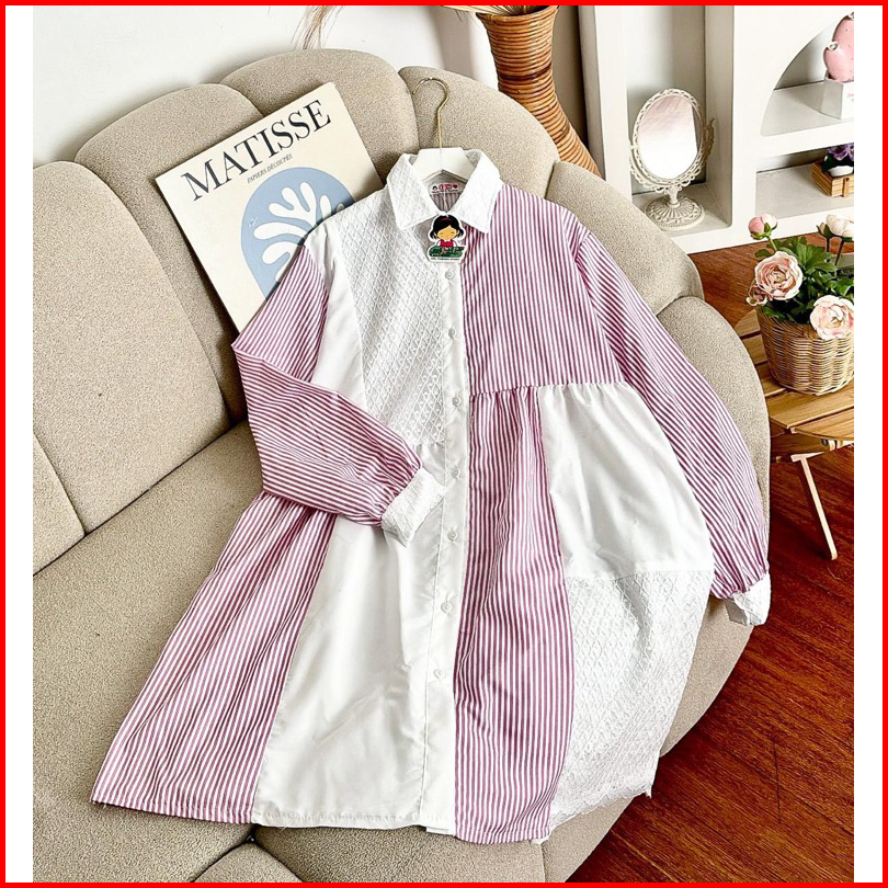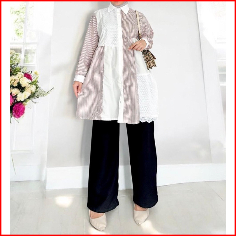 Girlfashionstory Original Lady Tunik Bahan Katun Poly Combi Brukat