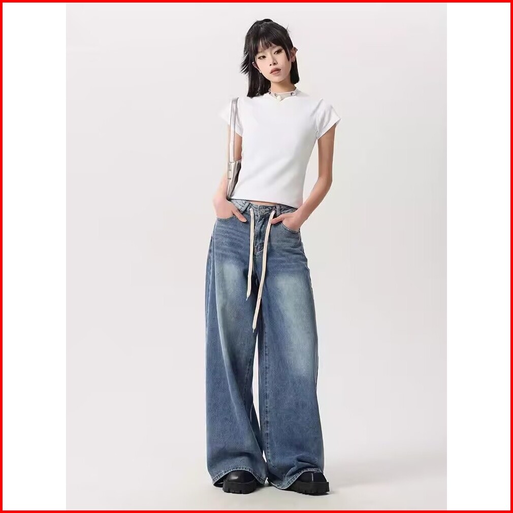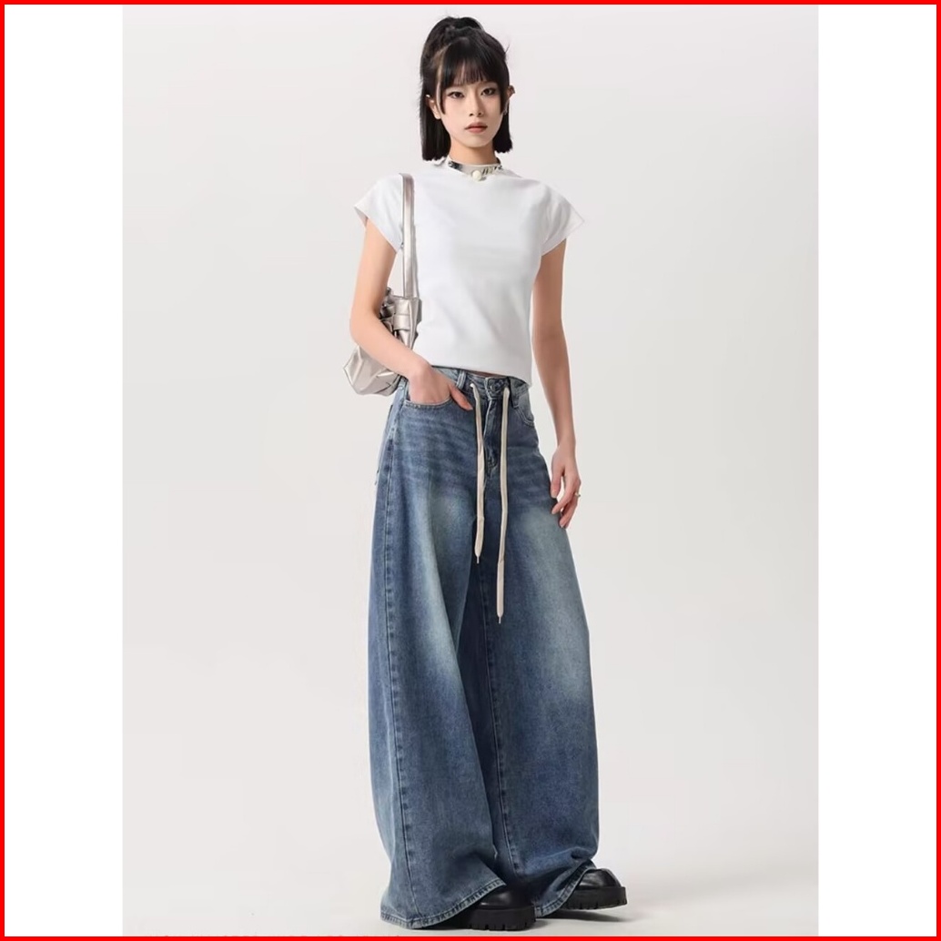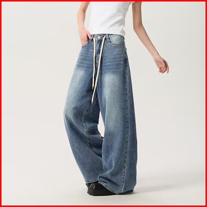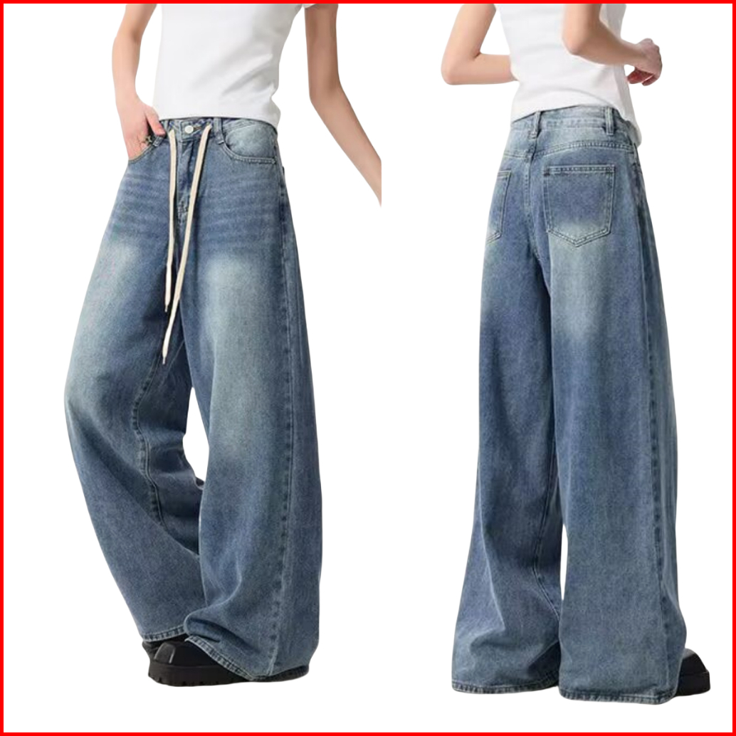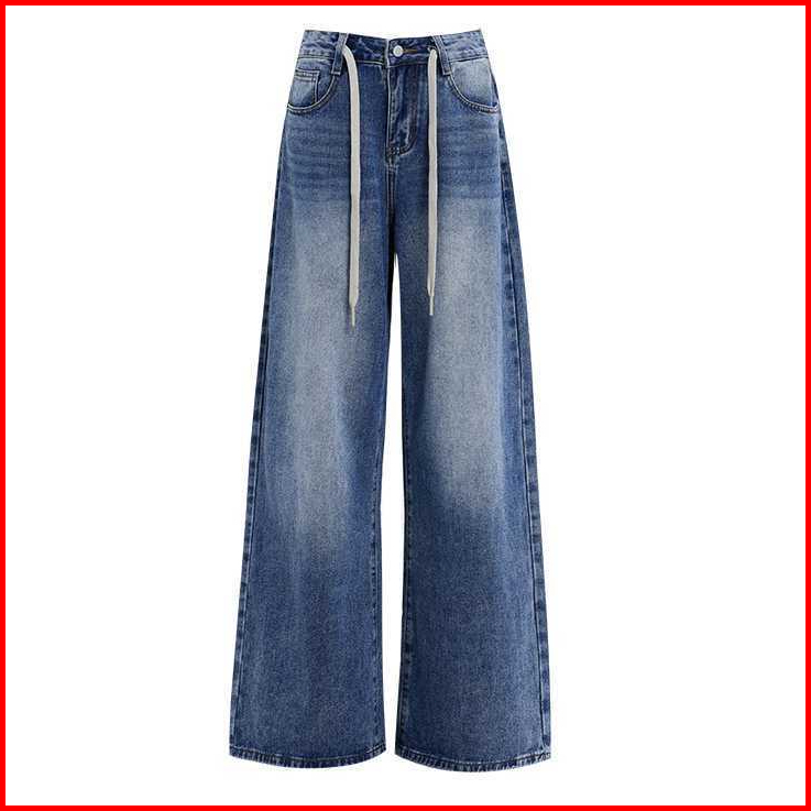 Katermen Jeans Oversize-jeans Pinggang Tinggi Wanita - Jeans Kaki Lebar Bertali Serut Vintage