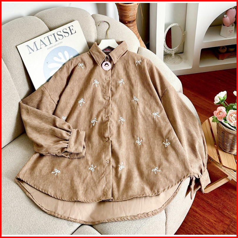 Girlfashionstory Original Fanzie Kemeja Corduroy Bordir Pita Import Premium