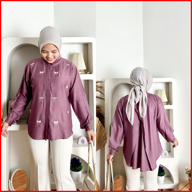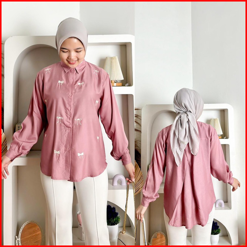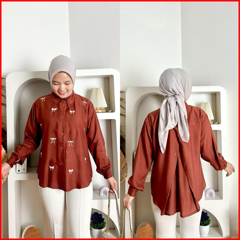 Girlfashionstory Original Borpi Kemeja Rayon Diamond Bordir Pita