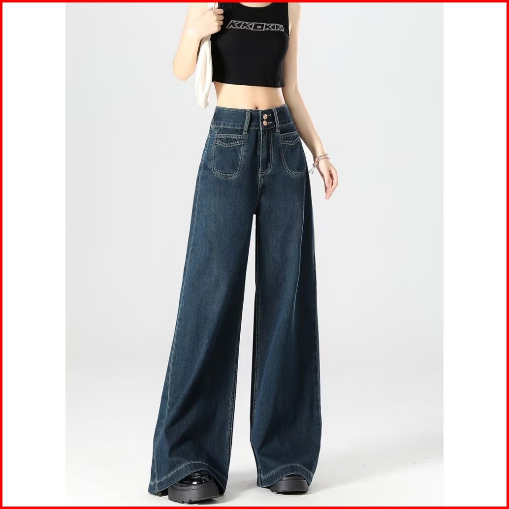 Katermen Jeans Wanita Pinggang Tinggi - Jeans Ukuran Besar - Jeans Kaki Lebar Lurus Longgar Korea
