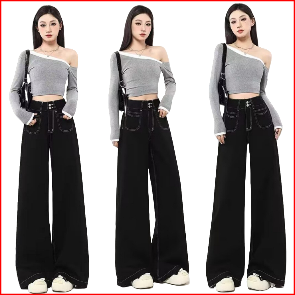 Katermen Oversized Jeans-jeans Wanita Pinggang Tinggi - Jeans Hitam - Jeans Gaya Korea Untuk Wanita