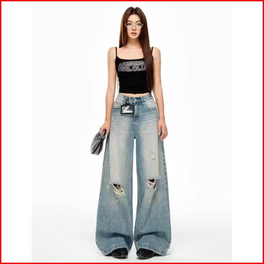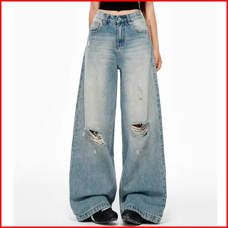 Katermen Jeans Berpinggang Tinggi-jeans Wanita-jeans Rusak-jeans Longgar Vintage-celana-celana Jeans