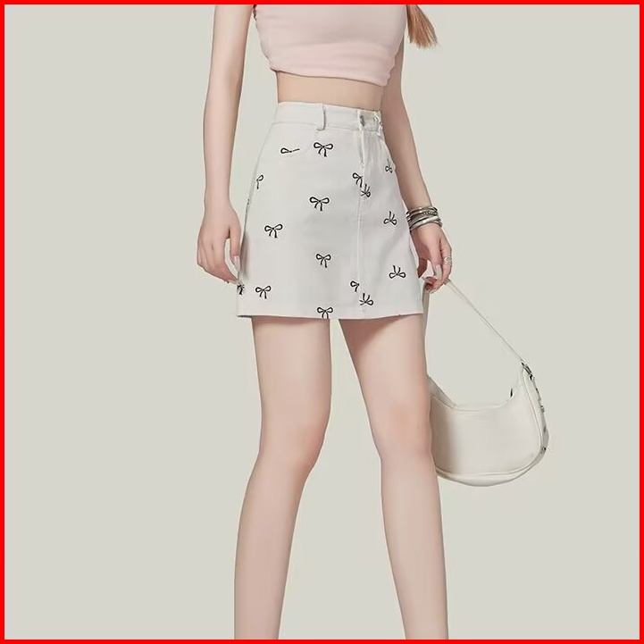 Kanermen Rok Denim Wanita Gaya Korea Retro Rok Denim Hitam Pinggang Tinggi Rok Pendek Ramping
