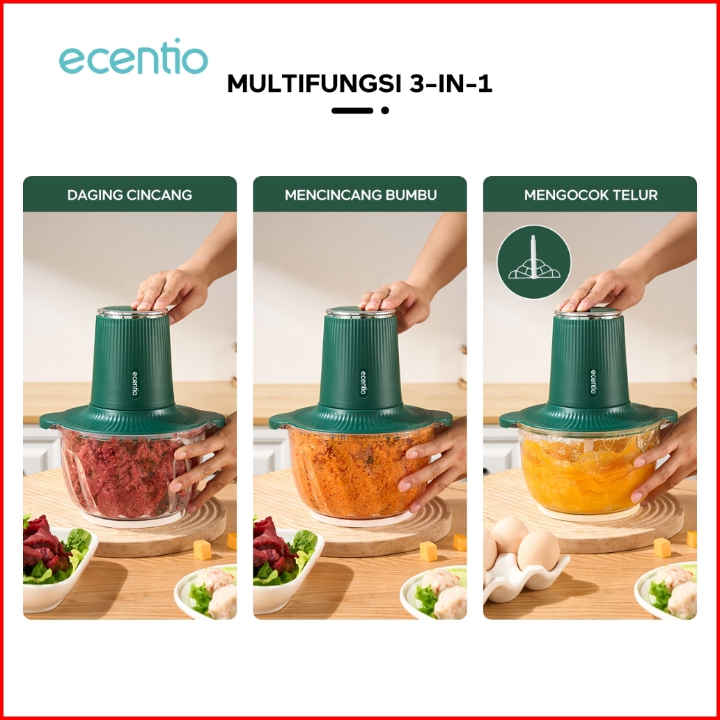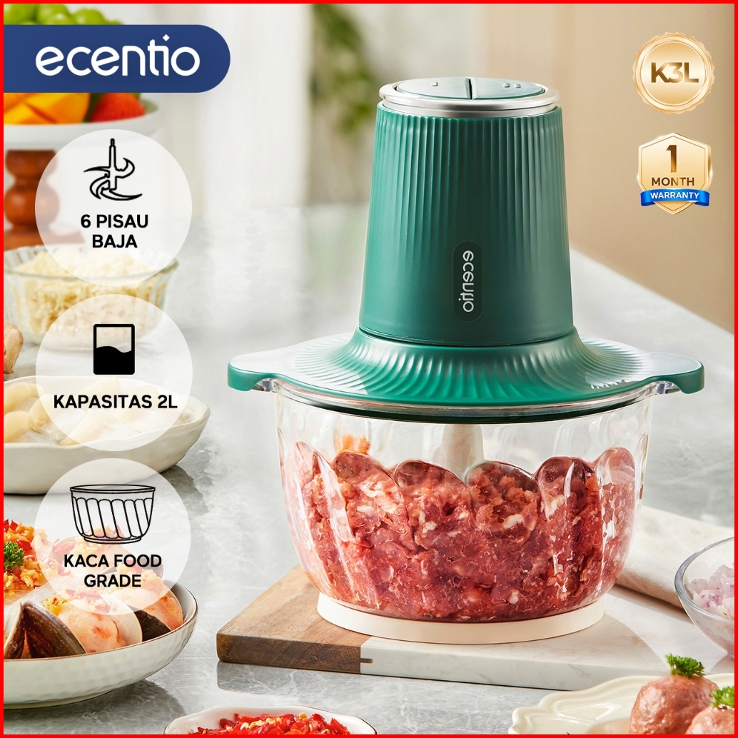 Ecentio 3 In 1 Food Processor Penggiling Daging 6 Mata Pisau 2l Kaca Chopper 350w Food Grade Mesin Giling Daging Mixer T