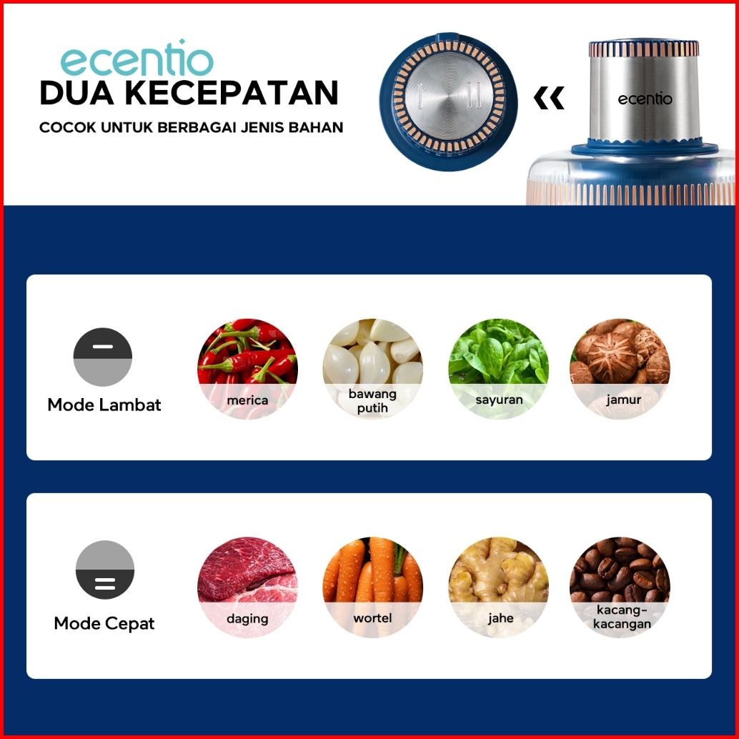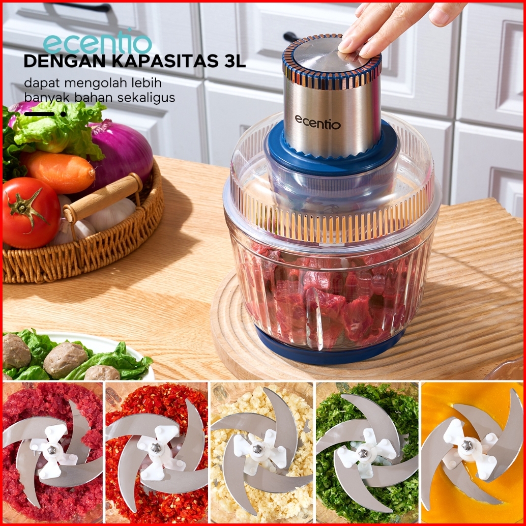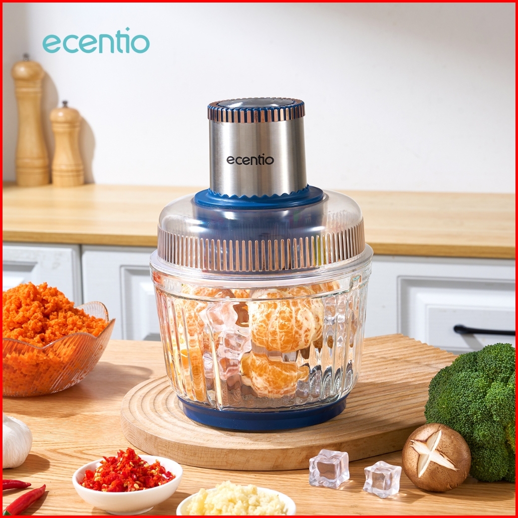 Ecentio Penggiling Daging 3l Food Chopper Kaca Motif 400 Watt 6 Mata Pisau 2 Speed Food Processor Blender Mpasi Pengupas