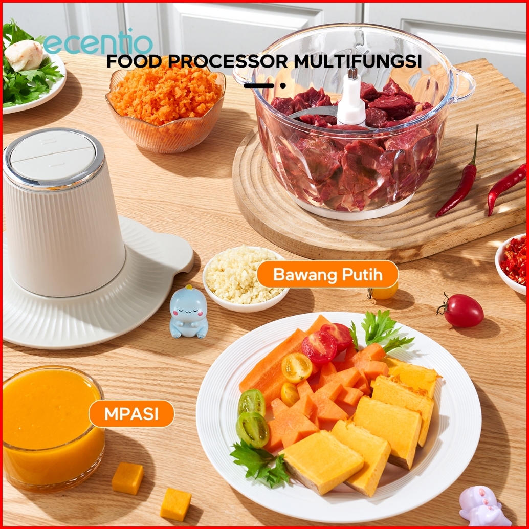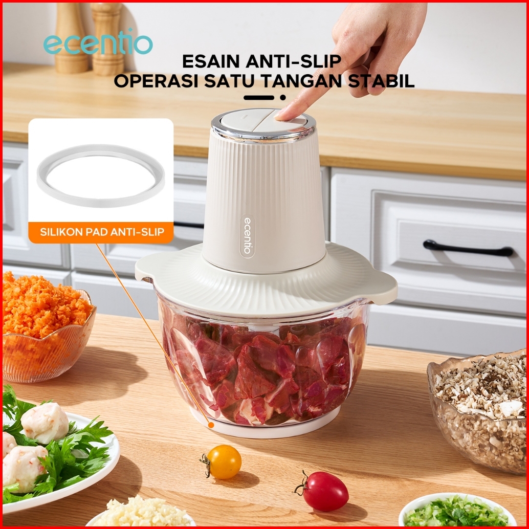 Ecentio 3 In 1 Food Chopper 6 Mata Pisau 2l Kaca Penggiling Daging Processor 350w Food Grade Mesin Giling Daging Mixer T