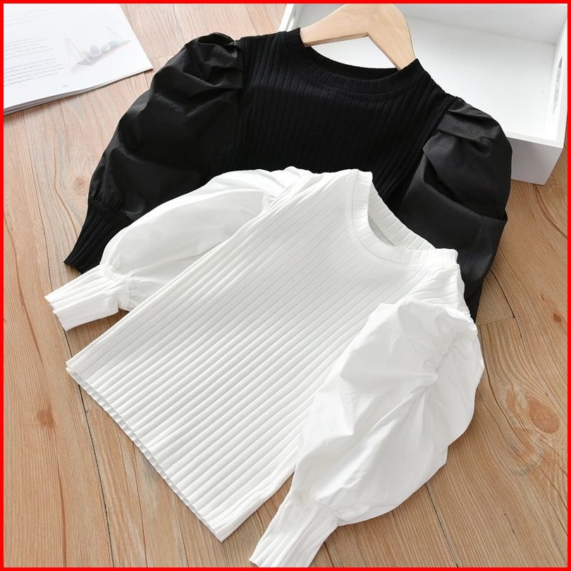 Kd9-kaos Anak Bayi Perempuan Polos Lengan Balon