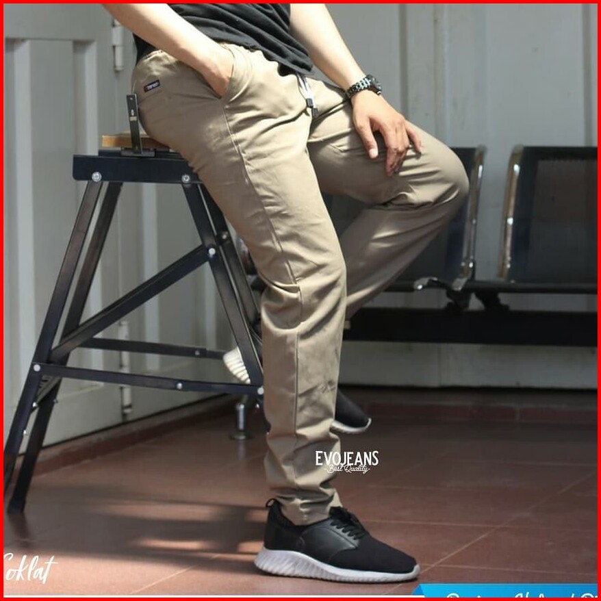 Terbaru Celana Panjang Chino Pants Pinggang Model Kolor Rip