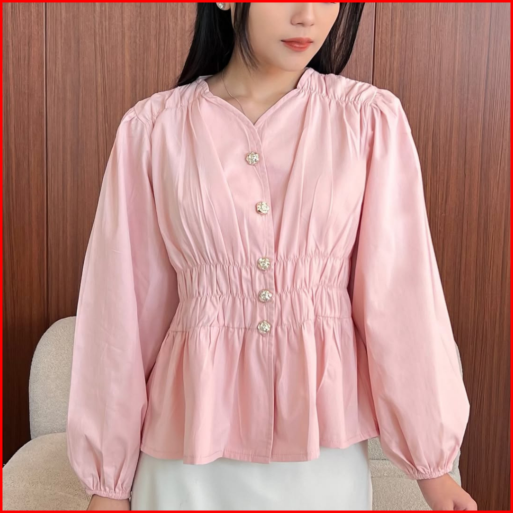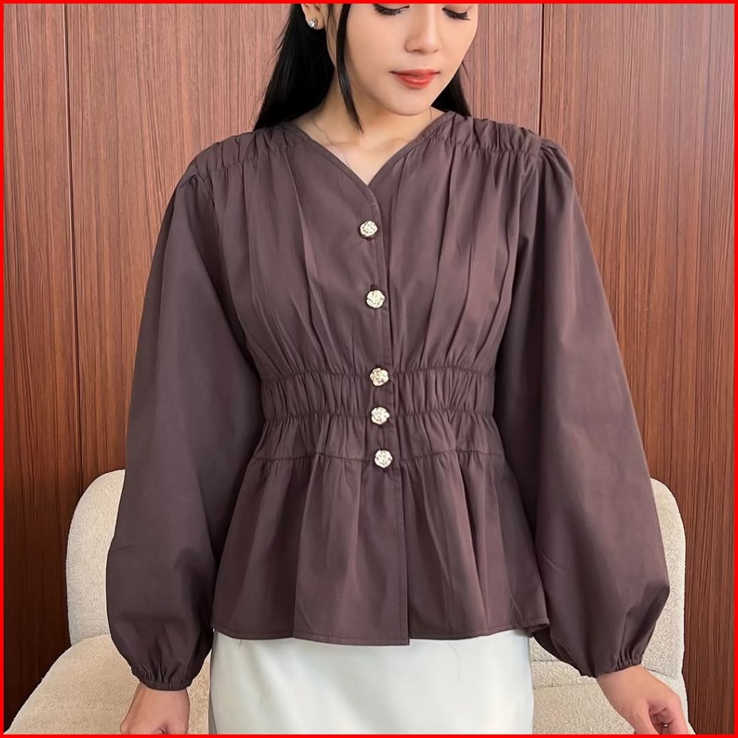 Atasan Wanita Rose Button Kemeja Slim Fitt Valena