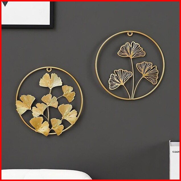 Utama Jakarta Baru - Hiasan Dinding Bulat Motif Daun Nordic Hiasan Dinding Frame Metal