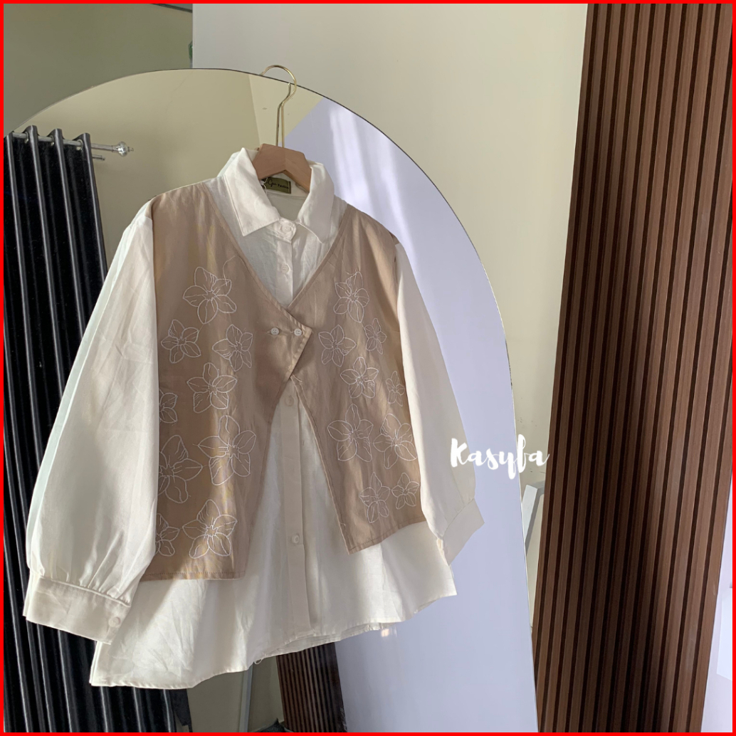 Madona Blouse Bordir Bunga Variasi Vest Kancing Wanita
