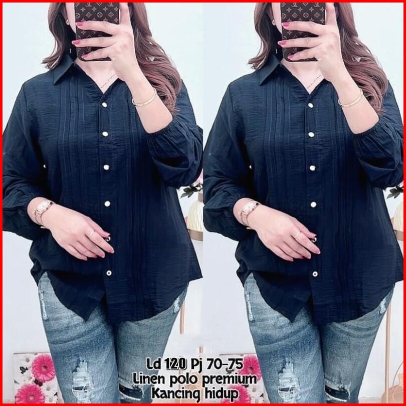 Anin Kemeja Wanita Lipit Polo Linen Korean Minimalis