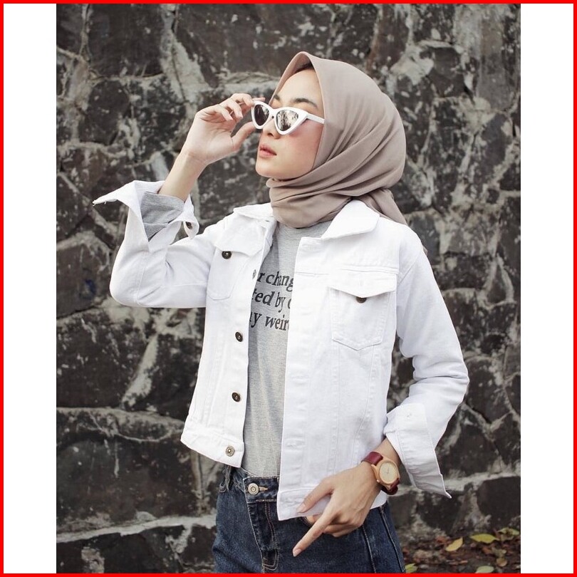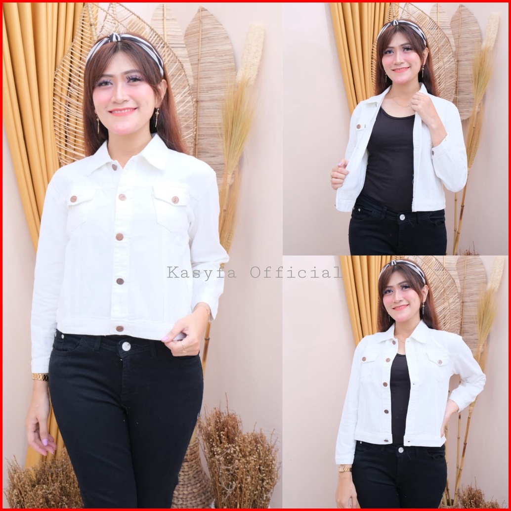 Witney Jaket Jeans Putih Wanita Jaket Crop Biondy