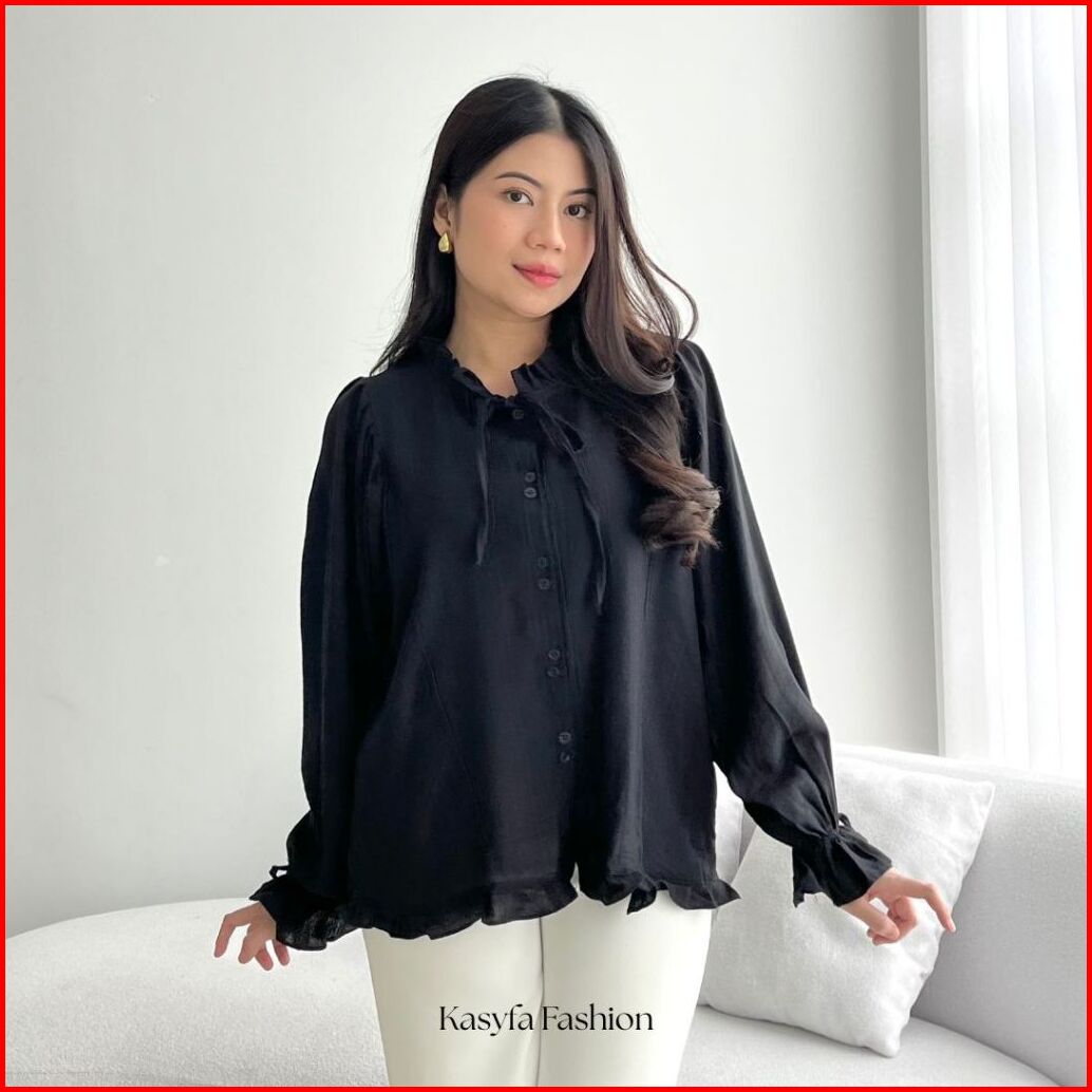 Anya Atasan Wanita Variasi Ruffle Tali Blouse Wanita Polo Linen