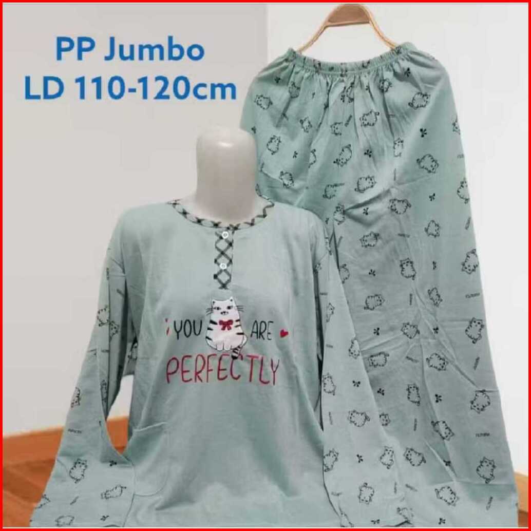 Set Pp Baju Tidur Kaos Lengan Panjang Dan Celana Panjang Jumbo Babydoll Wanita Ld 110-120cm