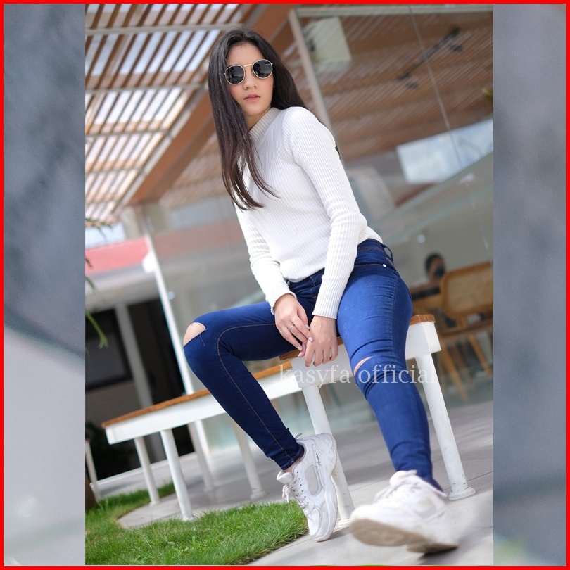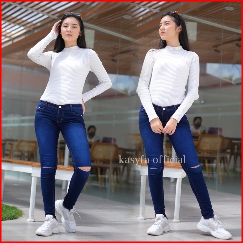 Celana Jeans Skinny Sobek Lutut Soft Denim