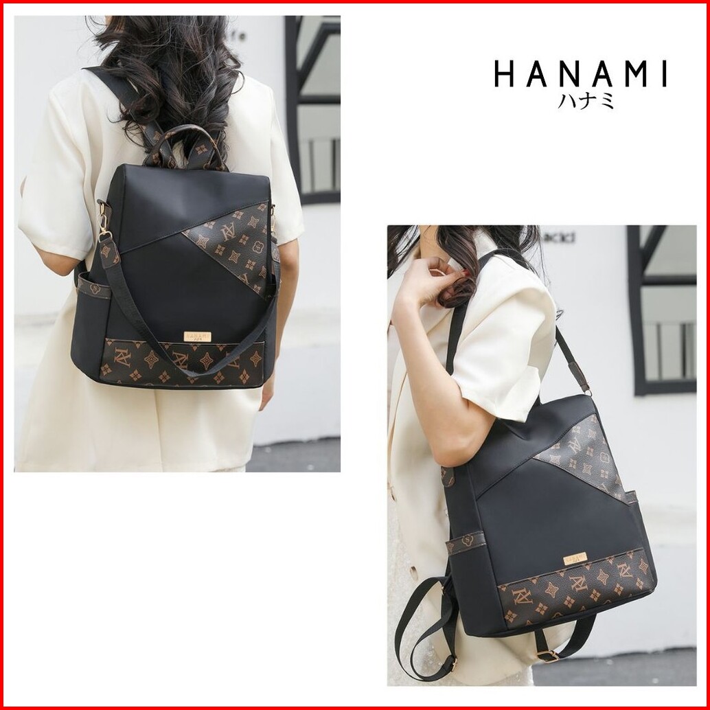 Hanami Tas Ransel Nura Hitam Terbaru Cantik Kulit Fashion Korea Murah Kekinian Sekolah Ta1094b5