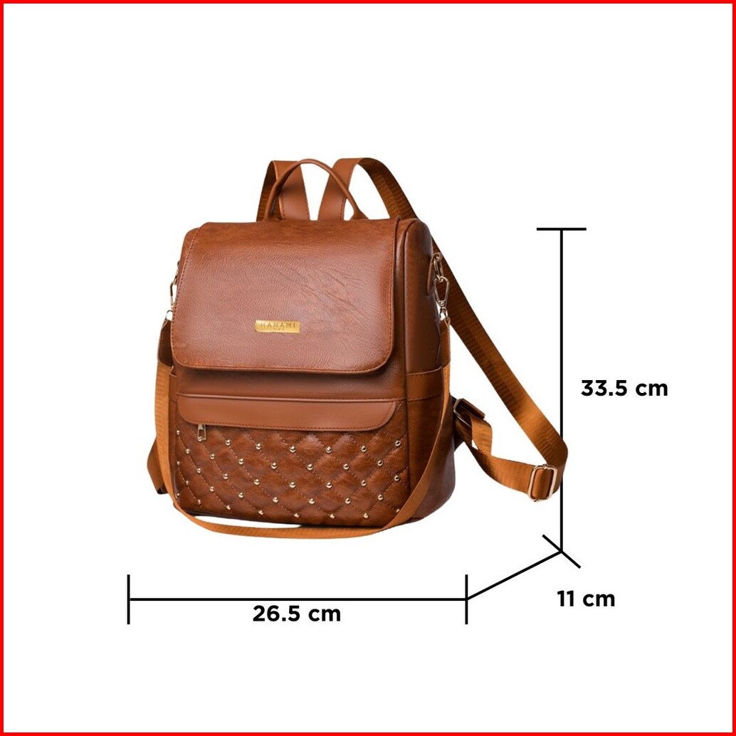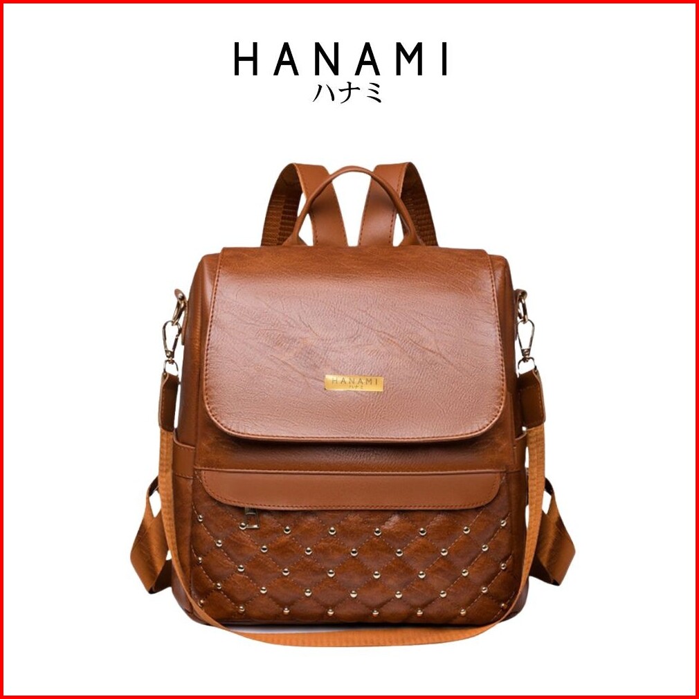 Hanami Tas Ransel Wanita Branded Cokelat Belvina Kulit Premium Backpack Baru Kantor Sekolah Ta1031b7